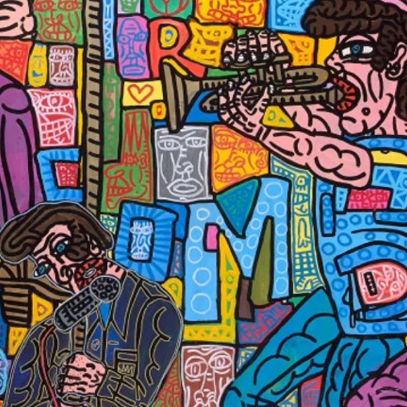 Caractérisées par des personnages excentriques et des formes abstraites, ses œuvres reflètent une sensibilité populaire, mêlant références à la culture de masse, à la musique et à l’histoire de l’art.